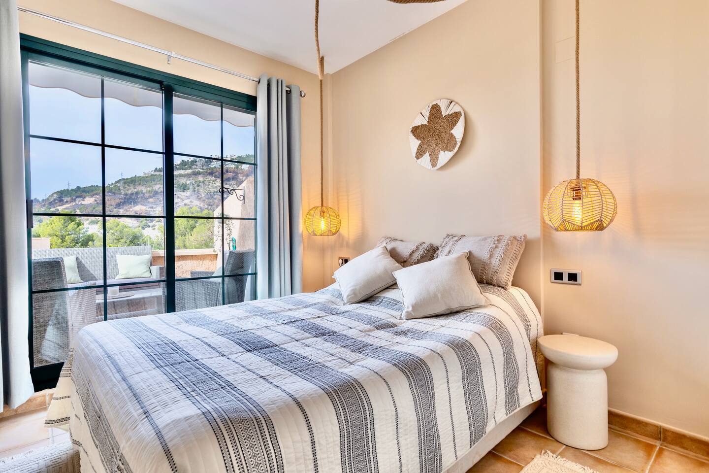 This charming apartment is ideal for a relaxing stay in the beautiful natural surroundings of Mascarat. It offers 2 double bedrooms, 2 bathrooms, a generous living area, a semi-open kitchen and a large terrace with barbecue and open views. The urbanisation offers 3 swimming pools with spectacular views, sports fields and is just 150 metres from the beach with a lovely beach bar. The marina of Campomanes is a 5-minute drive away and the historic centre of Altea can be reached in 10 minutes.