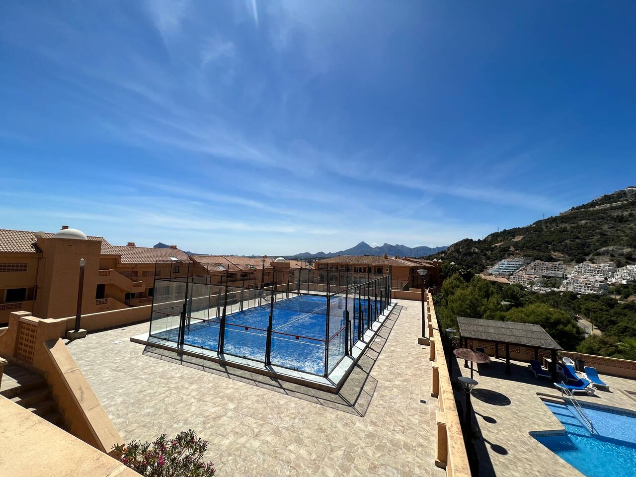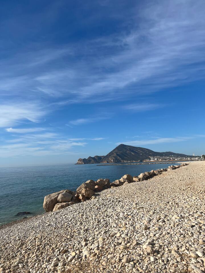 This urbanisation is located right next to the beach and is unique due to its setting in the beautiful natural surroundings of Mascarat, offering spectacular sea and mountain views from its various facilities. The urbanisation has no fewer than 3 swimming pools with spacious sunbathing areas, including both stone terraces and grass lawns, as well as sports facilities. As a guest, you naturally have free access to all facilities. The beach is just a 150-metre walk away, where you will find a bar/restaurant that is open for most of the year. The marina of Mascarat (Campomanes), with a wide selection of bars, restaurants and small shops, is also within walking distance. A beautiful walking route leads to the marina along the pebble beach.