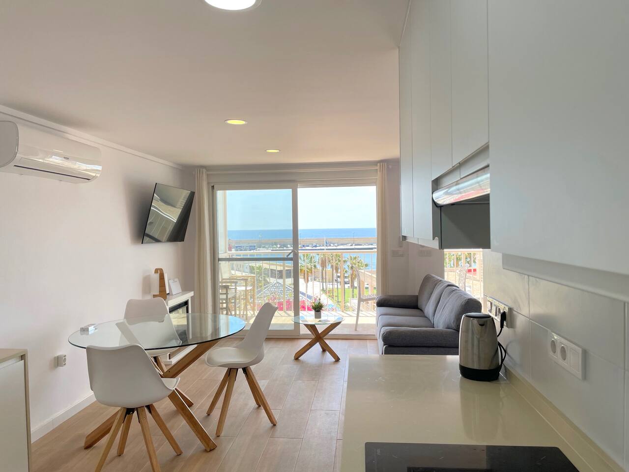 Enjoy a luxury experience in this accommodation on the beachfront, in front of the yacht club. It has a large terrace, ideal to enjoy the views of the sea and the port. Renovated in 2023, everything impeccable. The loft is on the fourth floor. The building has no lift. However, there is an entrance to the roof terrace, from the street behind the building. The apartment is distributed in a loft with open space bedroom, kitchen and living room, fully equipped. There is 1 separate bathroom. For everyone’s safety and comfort, we would like to point out that the apartment is not suitable for babies and children.