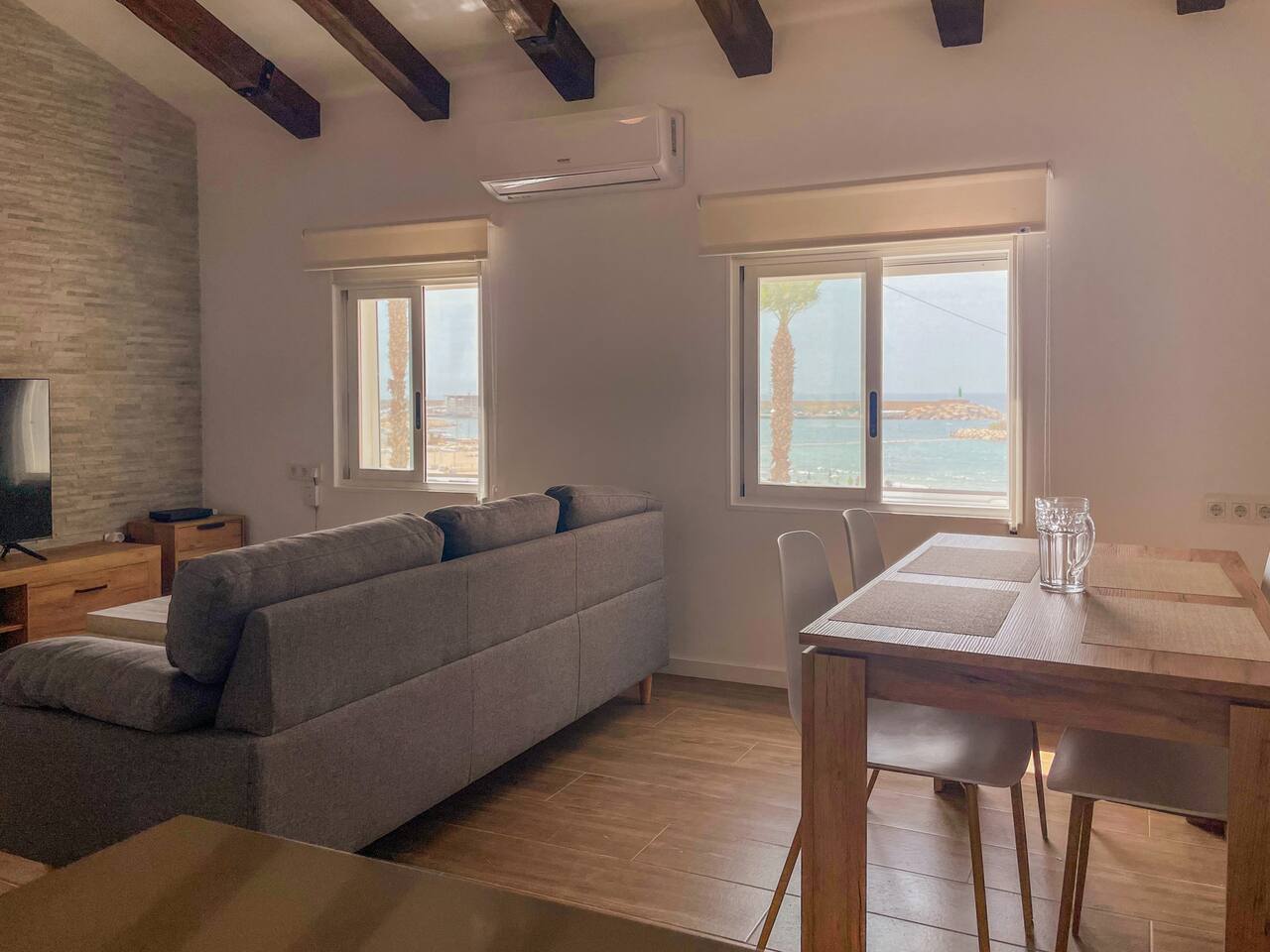 The apartment has been stylishly modernised and features 2 bedrooms, a luxury bathroom, and a spacious open-plan kitchen and living-dining area. There is fast fiber-optic WiFi with a speed of 600 Mb/s, perfect for working. From the living space, you’ll enjoy stunning sea views. Ideally located on the boulevard, within walking distance of the harbour and the old town. A unique Mediterranean retreat with charm and comfort. The apartment is located on the second floor of a historic building accessible by stairs (no lift). It is possible to leave your car at the door for loading and unloading, and there is usually plenty of free parking in the area. As an alternative, you can use paid parking at the marina (Club Náutico). Babies and children are welcome. Please note that the apartment is not ideal for families, as it is on the second floor without an elevator and has limited space for items such as a stroller.